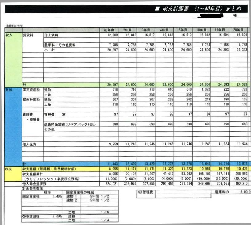 ※相場賃料、管理費、税金等をふまえ、必要に応じたリフォーム、建て替え、解体の見積もりを取得した収支計算を算出します。